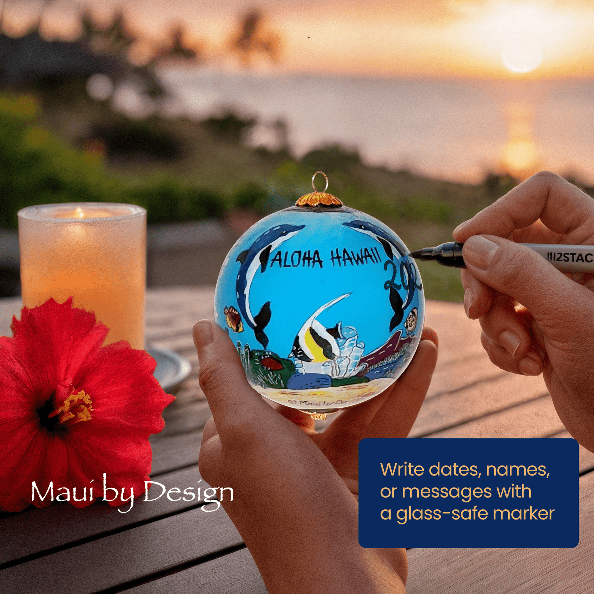 If you can’t be in Hawaii for Christmas, at least you can have a Maui ornament with a hand painted Dolphins and Sea Turtle from Maui by Design, the Hawaii store online for when you are not in the islands.