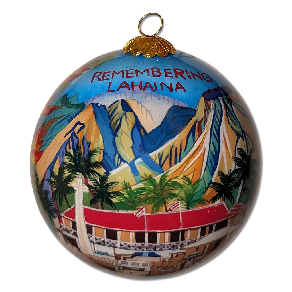 Cherish the Memories of Lahaina, Maui, in this exquisite hand-blown glass ornament, a tribute to the cherished town lost to the devastating fire of August 2023