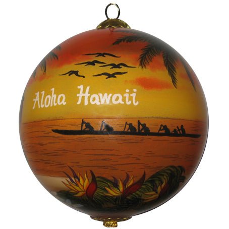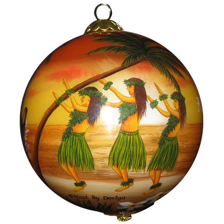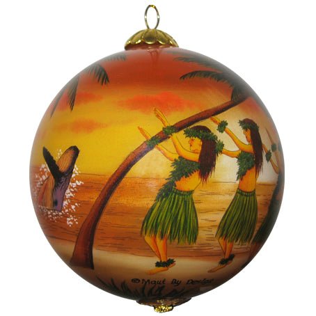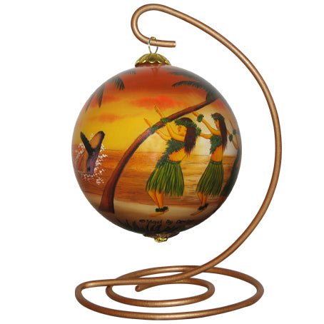 Like all of our collectible ornaments, the Sunset Hawaiian Hula ornament is hand painted from the inside of the glass ball. The ornament is 3.2 inches in diameter and comes with a protective and decorative gift box that makes it an ideal keepsake and gift from Hawaii.