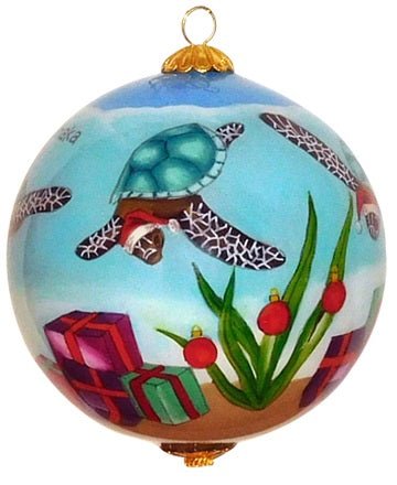 This is probably our cutest ornament: excited young honu sea turtles in Santa hats are diving for their Christmas presents.