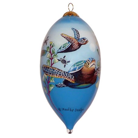 Hand painted Hawaiian ornament shows the state’s beloved Honu sea turtles painted in amazing detail. The green sea turtle – one of the world’s most ancient species – is revered in Hawaiian myth and a favorite of visitors to the islands alike.